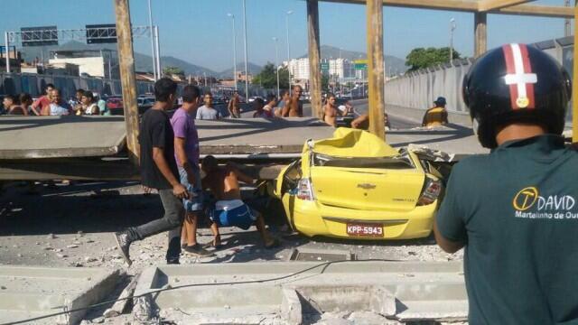 Um caminhão basculante derrubou uma passarela na Linha Amarela, altura de Pilares, na manhã desta terça-feira. Segundo a concessionária Lamsa, responsável pela via expressa, o acidente deixou pelo menos quatro mortos e cinco feridos. Um táxi placa KPP 5943, um Palio placa KWH 1367 e uma moto foram esmagados na queda da estrutura. Bombeiros trabalham no resgate das vítimas e na retirada da passarela. Os feridos, entre eles o motorista do caminhão que provocou o acidente, foram levados para as seguintes unidades: Luis Fernando Costa, de 31 anos foi para o Hospital municipal Lourenço Jorge, na Barra da Tijuca, Jairo de 44 anos foi encaminhado para o Hospital Federal de Bonsucesso, na Zona Norte da cidade, e Glaucia, de 40 anos foi resgatada por helicóptero, para o Hospital Estadual Alberto Torres, em São Gonçalo. Dois mortos foram identificados: Célia Maria, de 64 anos, que foi arremessada da passarela e Adriano T. de Oliveira, de 26 anos, que foi lançado no canal que divide as pistas da via expressa. Outros feridos ainda não identificados são uma mulher de 36 anos, encaminhada para o Hospital Municipal Souza Aguiar, e um homem de 70, socorrido para o Hospital Municipal Salgado Filho. Ainda não há informações sobre o hospital para onde a quarta vítima foi levada.